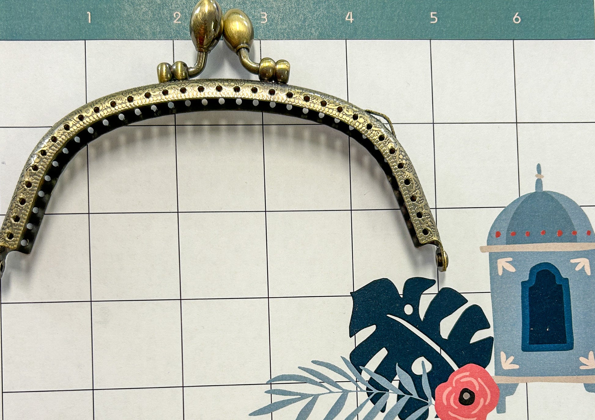 Fashioned from metal with an Antique Brass finish and filigree detail this "Sew in" style purse frame also features an attachment point for a wrist strap or charm.