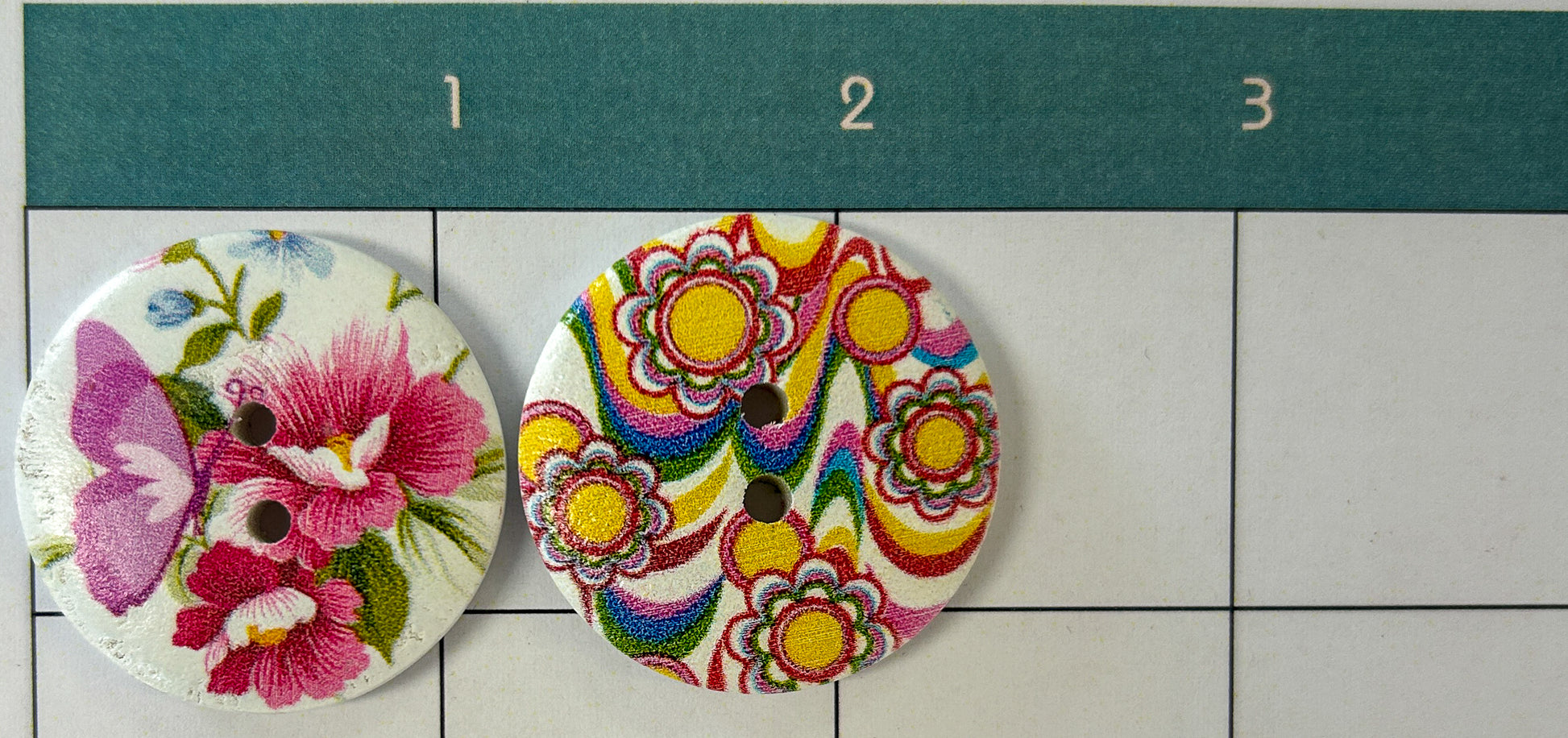 These pretty floral painted wooden buttons add a touch of sweet to your next project