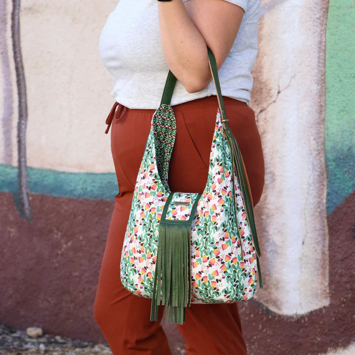 Paloma is a soft, comfortable hobo-styled bag with lots of surprises! This bag has a back slip pocket, hidden by the flap closure. The flap sports magnetic snaps, keeping your bag securely closed. Interior pockets add practicality and the fringe accents add fun. The name of this free-spirited bag was inspired by Paloma Picasso, fashion designer and businesswoman.