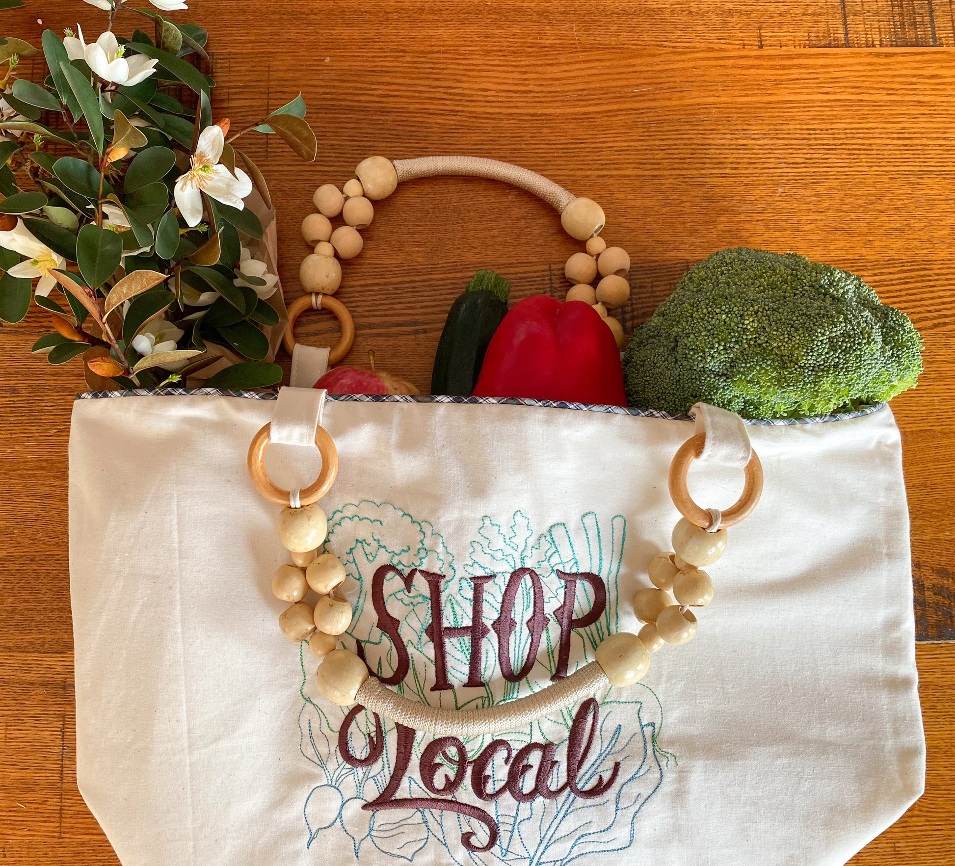 We used Colour no. 1 around the top of our "Keep it Local Market Bag" which created a nice contrast to the light coloured fabric and beaded handles.