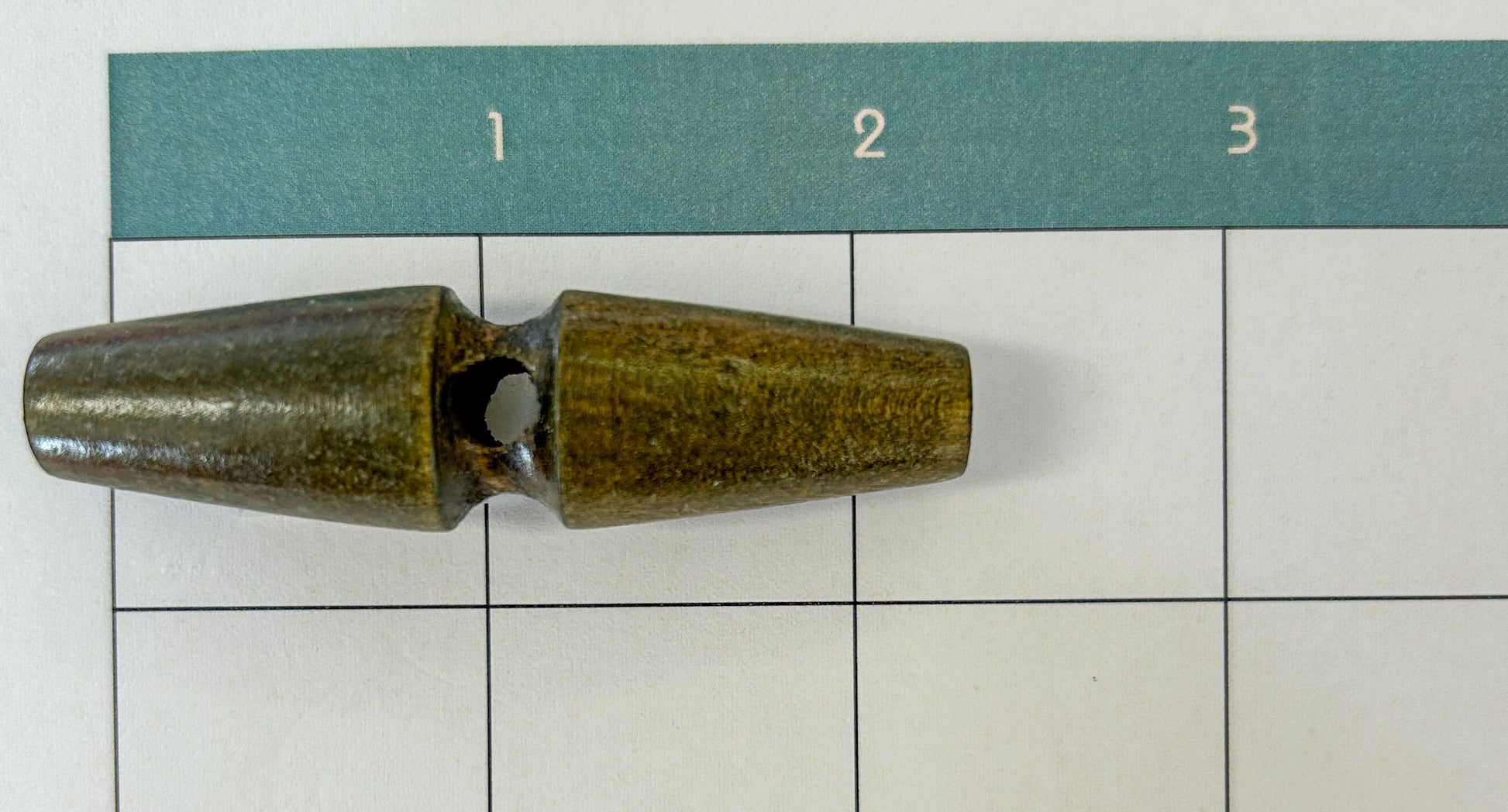 Single hole wooden toggle measuring approx 2.5 inches (6cm) in length.