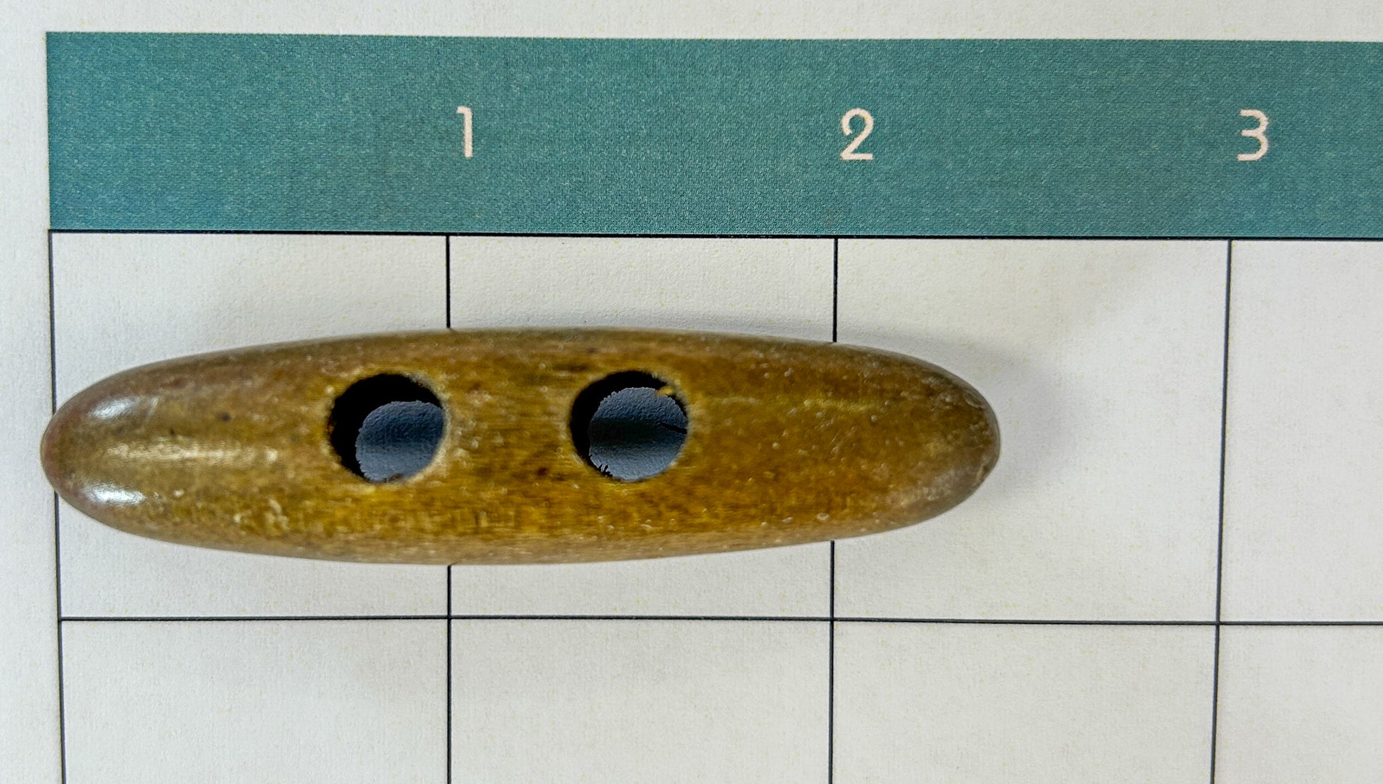 Double hole wooden toggle measuring approx 2.5 inches (6.5cm) in length.