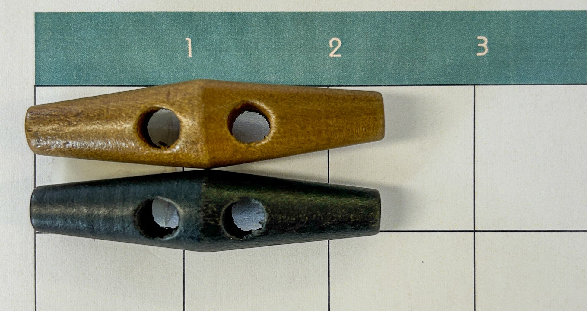 Double hole wooden toggle measuring approx 2.5 inches (6.5cm) in length.