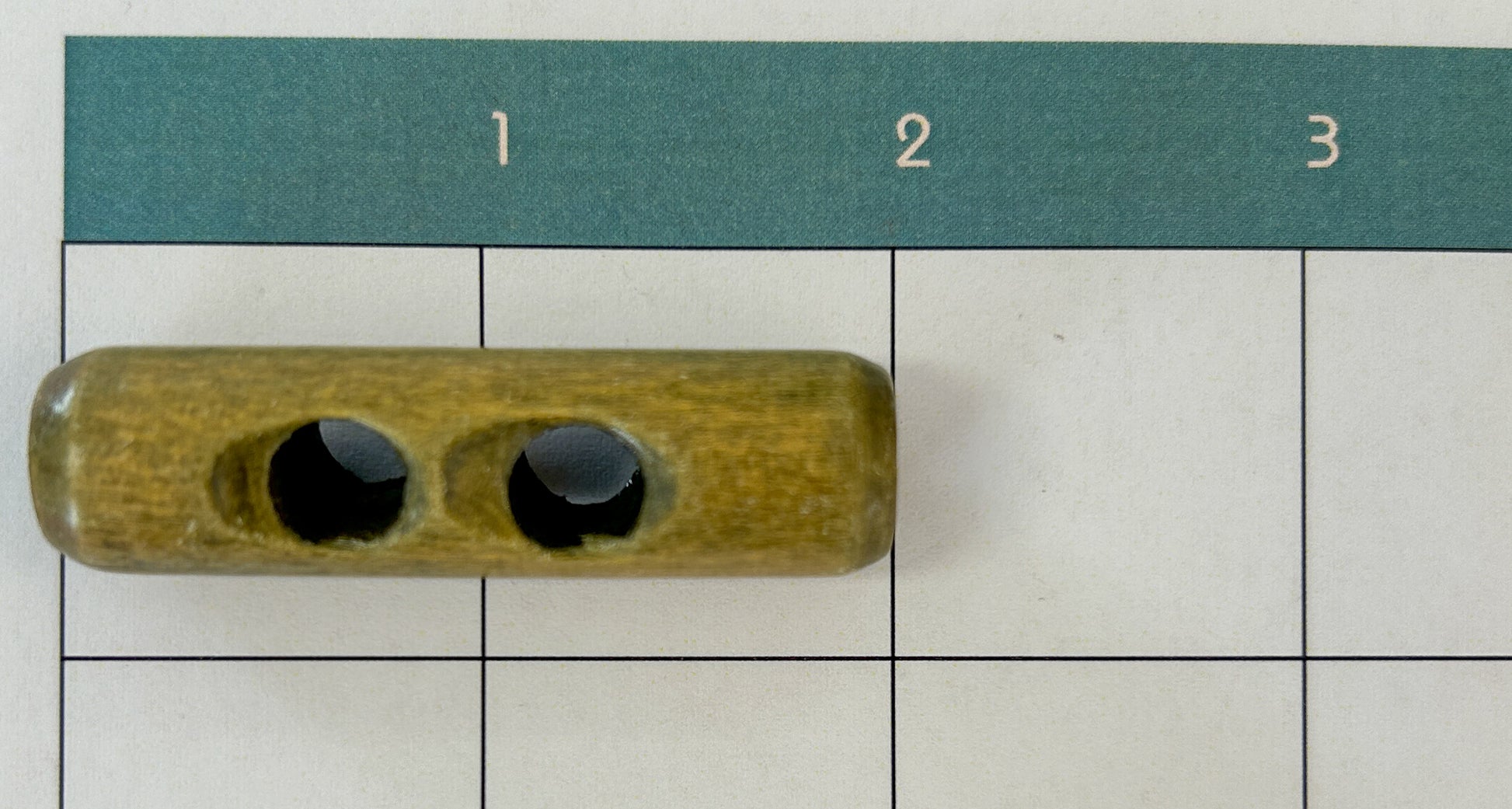 Double hole wooden toggle measuring approx 2 inches (5cm) in length.