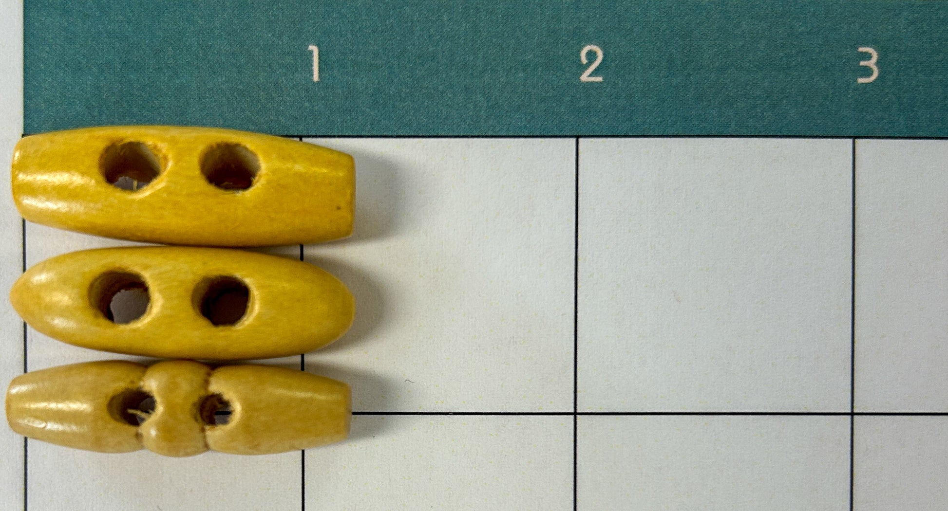 Double hole wooden toggles measuring approx 1.25 inches in length.